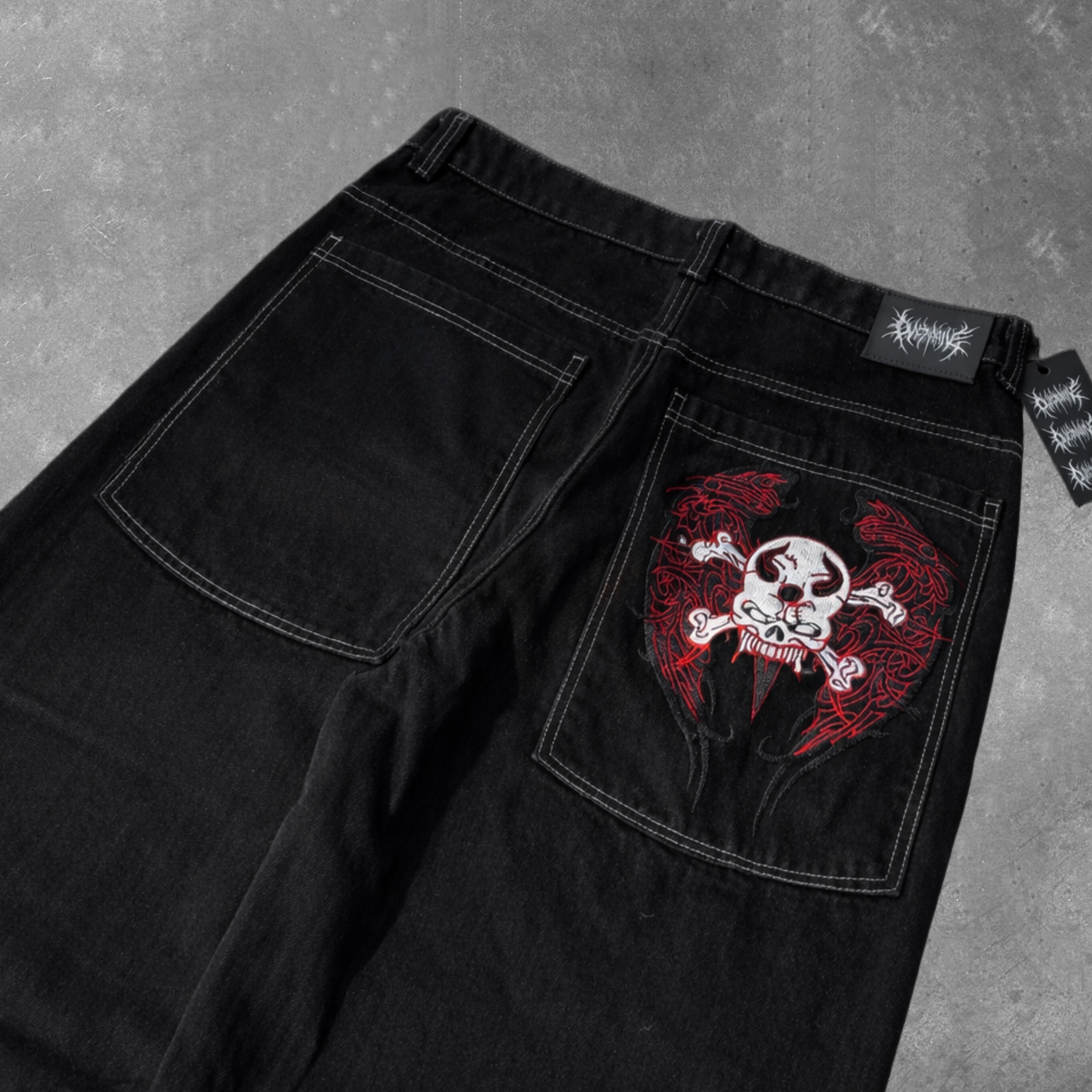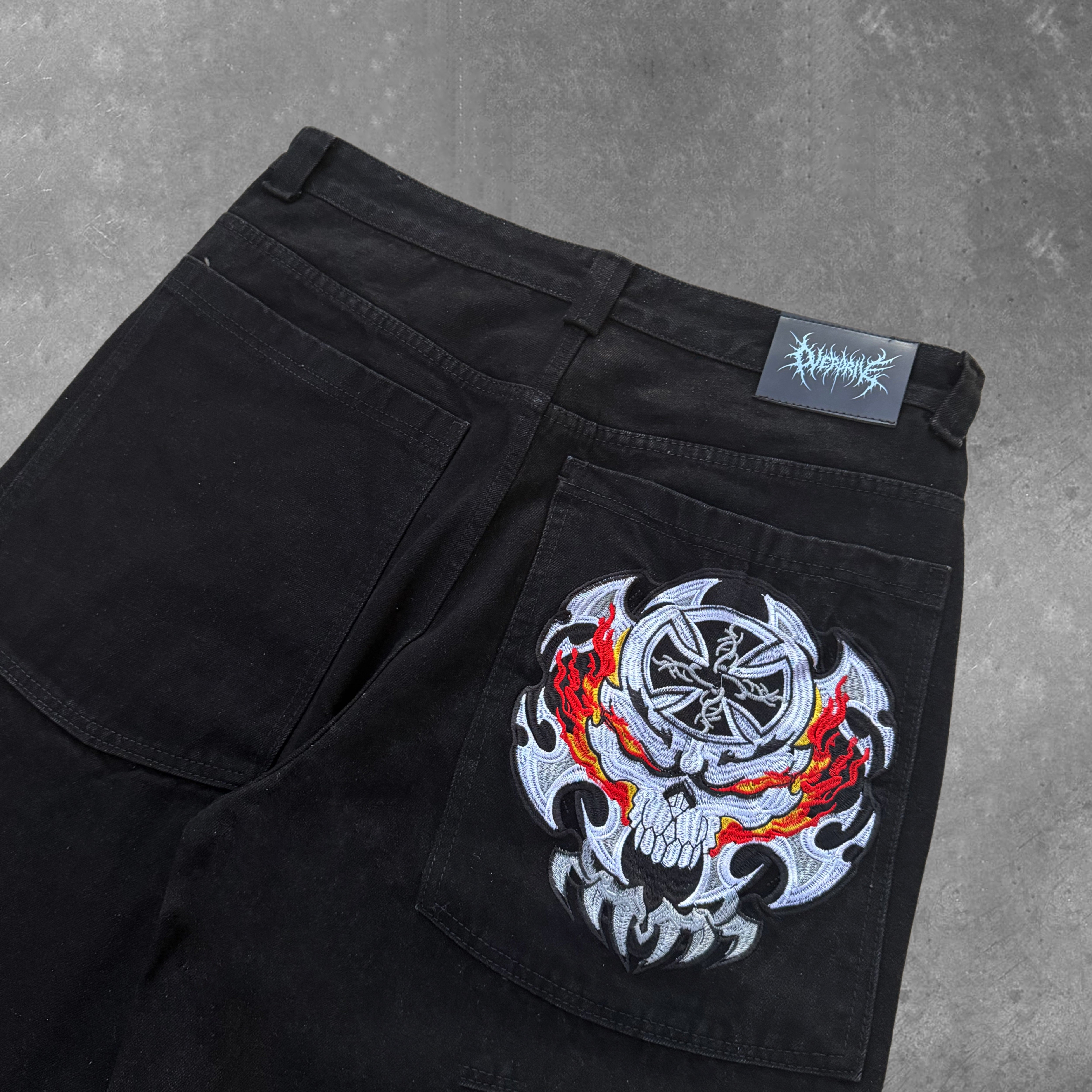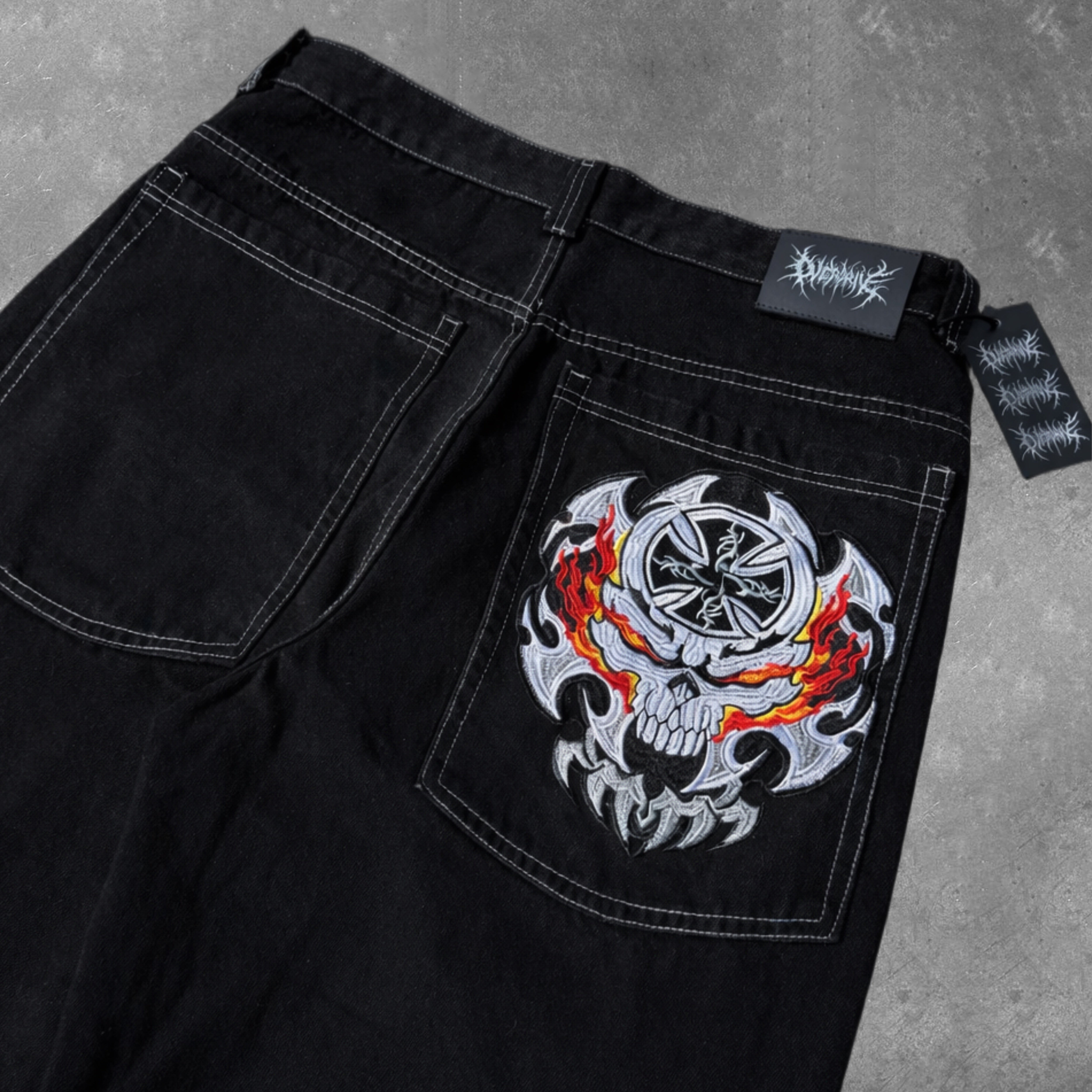 flame skull contrast stitch